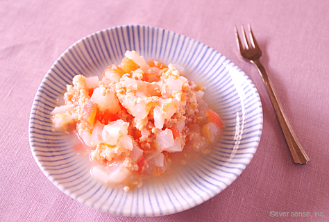 - 1かぶの皮をむき、5mm程度の角切りにする